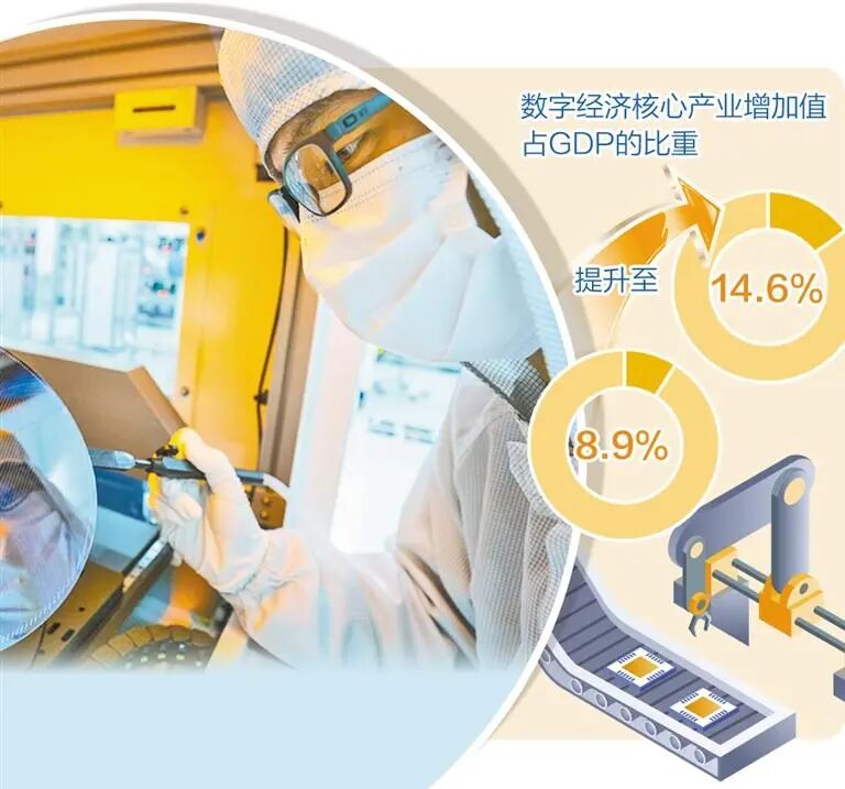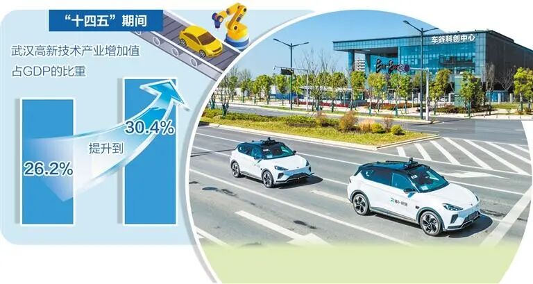 依托“五谷”,“十四五”期間,武漢高新技術產業增加值占GDP的比重從26.2%提升到30.4%,數字經濟核心產業增加值占GDP的比重從8.9%提升到14.6%。全市高新技術企業數量從8000多家增長到16000多家,每萬家企業中高新技術企業數量達171家。