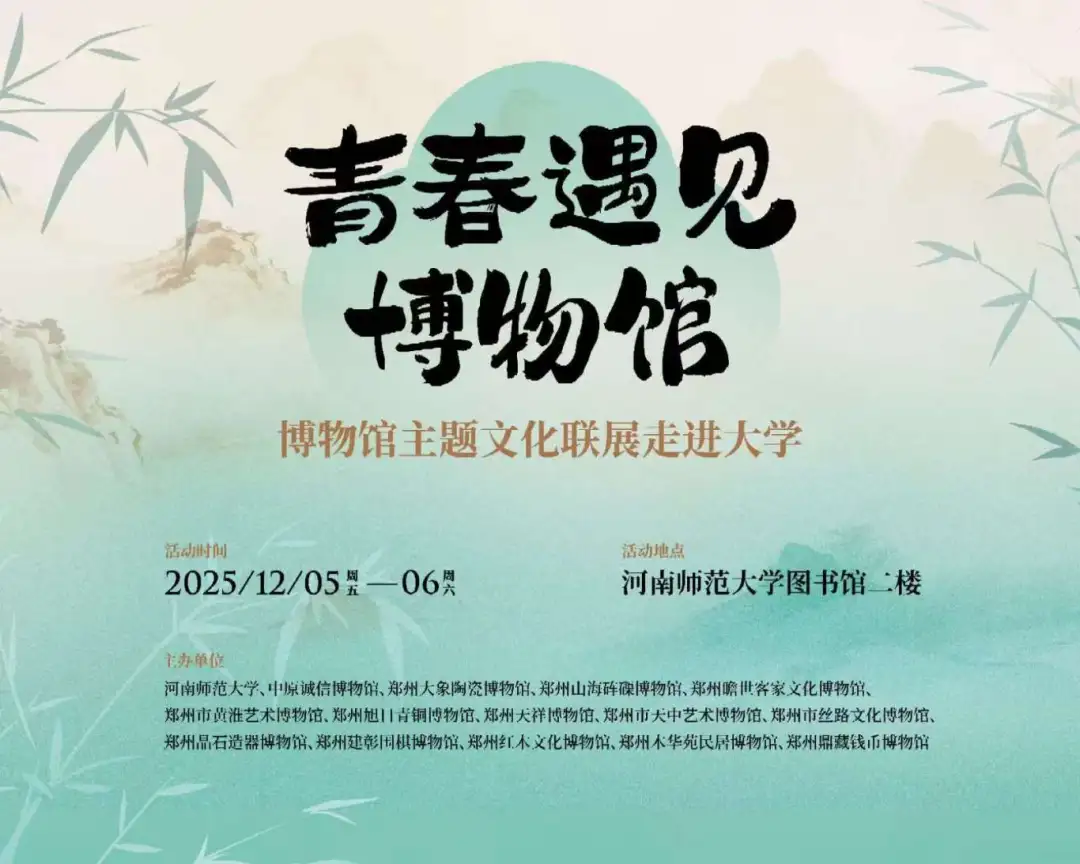 為響應“讓文物活起來”的號召,搭建博物館與青年學子深度對話的橋梁,2025年12月5日至6日,由河南師范大學聯合多家博物館共同主辦的“青春遇見博物館——博物館主題文化聯展走進大學”活動,在河南師范大學圖書館一樓順利開展。