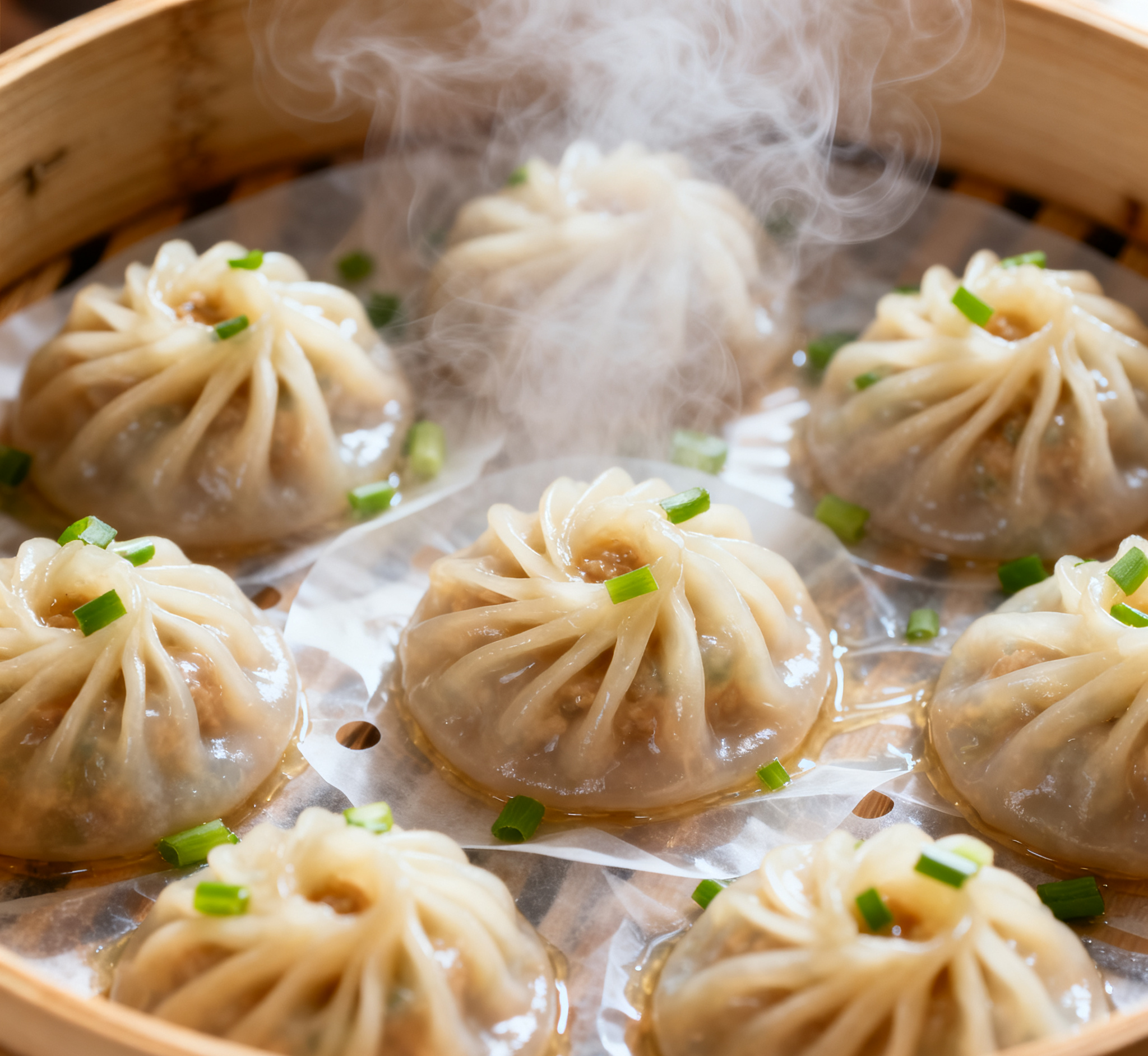 灌湯包的核心秘密在于“湯”。制作時,需將豬皮熬制的肉凍剁碎,按比例拌入鮮嫩的豬后腿肉餡中。在這個過程中,蔥姜水、香油、醬油的配比極講究,既要鎖住肉的鮮美,又不能掩蓋湯的清甜。蒸制過程中,高溫使得肉凍迅速融化,化作一包醇厚的湯汁,將肉餡包裹其中。