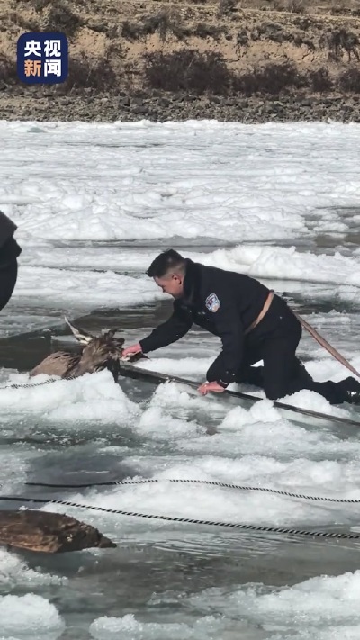 零下10℃,破冰救援!三只國家一級保護動物白唇鹿被困冰窟,警民攜手冰河救援(總臺記者 張力 成都臺)