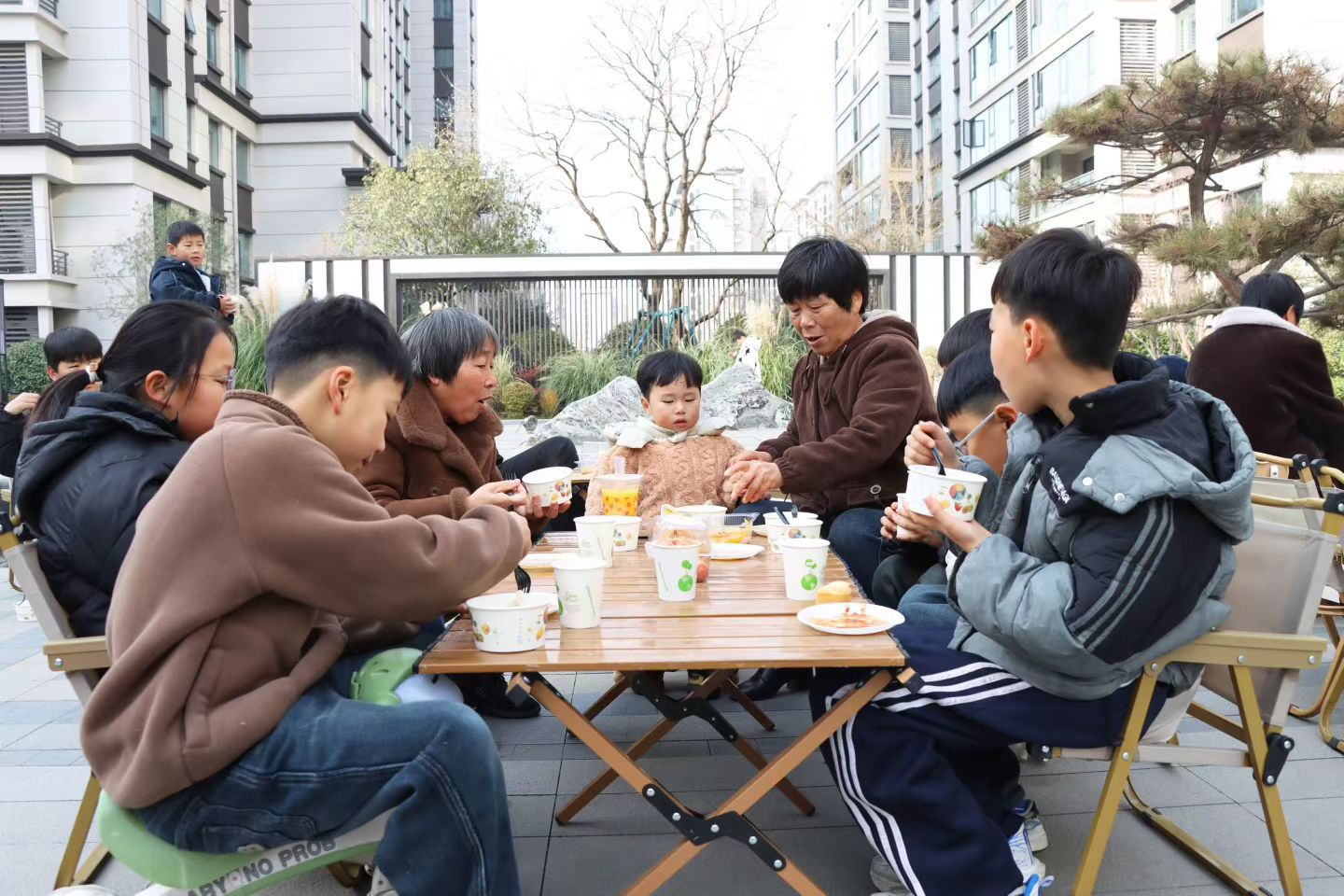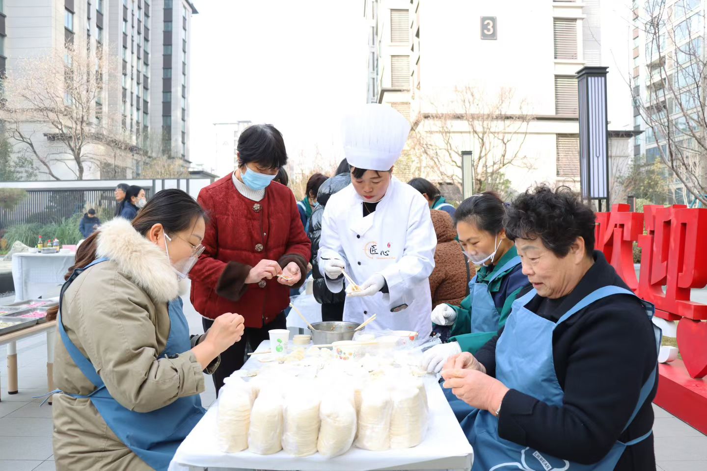 大家圍坐在一起,一邊包著形態各異的餃子,一邊嘮著家常,分享著生活中的趣事,歡聲笑語回蕩在小區的每一個角落。