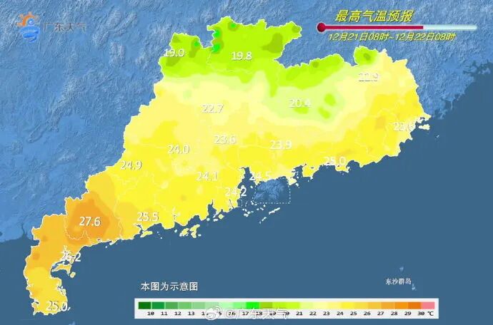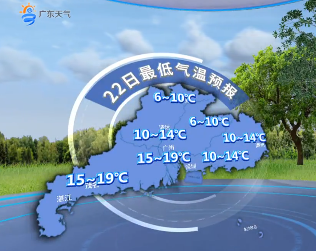 據(jù)@廣東天氣 預(yù)計(jì),21-22日,受北方弱冷空氣南下影響,氣溫小幅下降,大部多云間晴。23日云量增多,部分市縣有小雨。