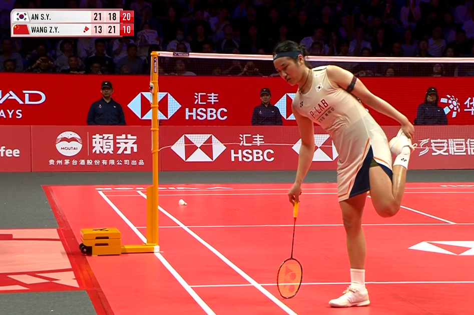 有意思的是,安洗瑩在15-7領先的時候,左大腿出現反應,但仍然堅持打到20-8拿到冠軍點。然而在王祉怡扳回一個冠軍點后,場上突然出現意外了——安洗瑩左腿抽筋。