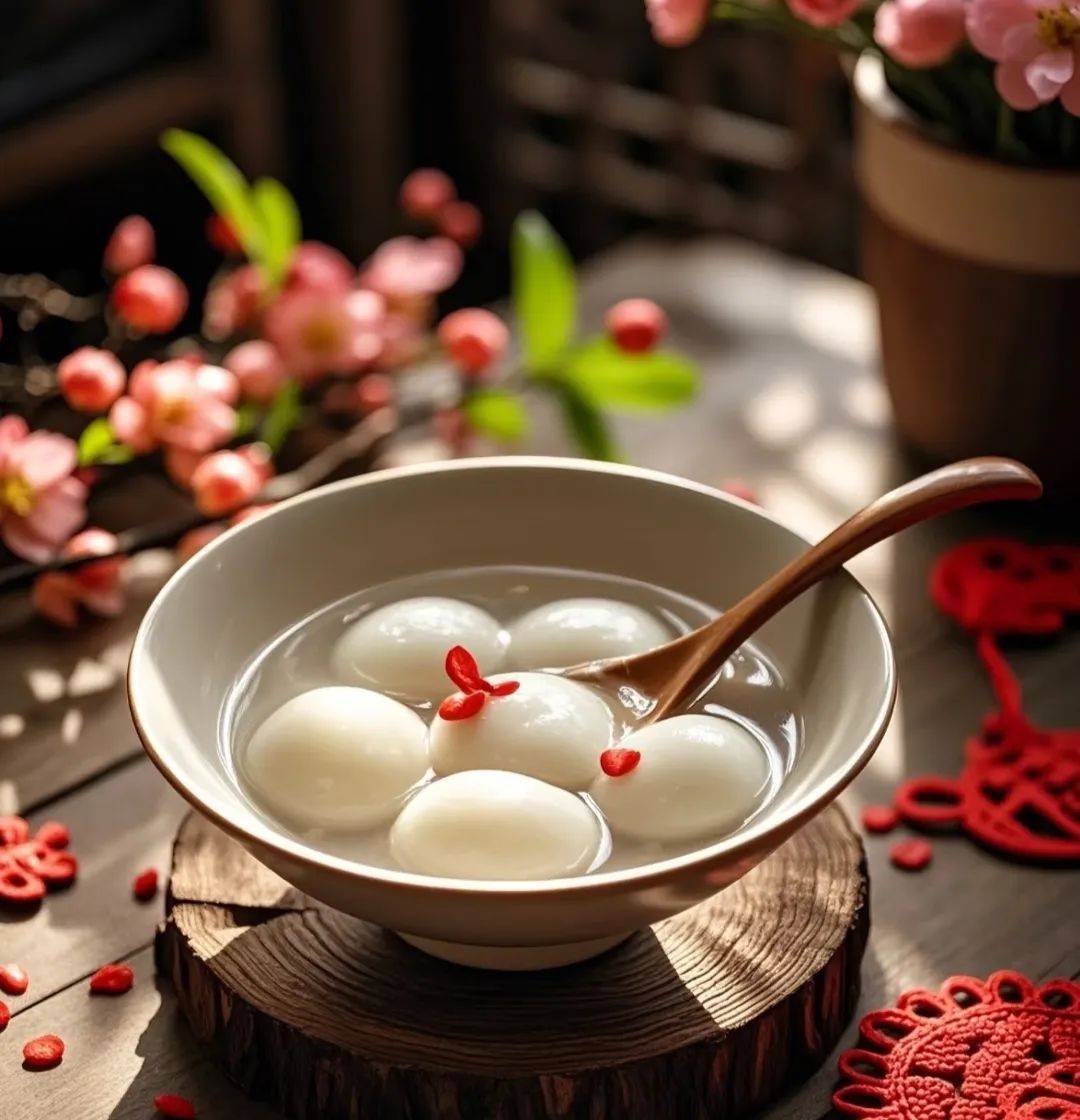 南方的湯圓,則是裹著甜香的時光印記。糯米粉加溫水揉成溫潤的團,指尖捏出淺淺的窩,填入芝麻糖的綿密、花生碎的香脆,或是咸香的肉末,搓成一顆顆圓潤的白玉丸。水沸下鍋,湯圓從鍋底緩緩浮起,像夜空中次第點亮的星子,撈起一顆咬開,軟糯的外皮裹挾著流心餡料,甜香或咸鮮在舌尖漾開,從味蕾暖到心底。民間“吃了湯圓大一歲”的說法,從不是歲月催人老的感慨,而是對時光緩緩、歲歲平安的珍重,一碗湯圓下肚,便又攢下了一歲的順遂與期盼。