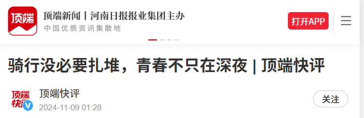 附:《騎行沒必要扎堆,青春不只在深夜|頂端快評》原文