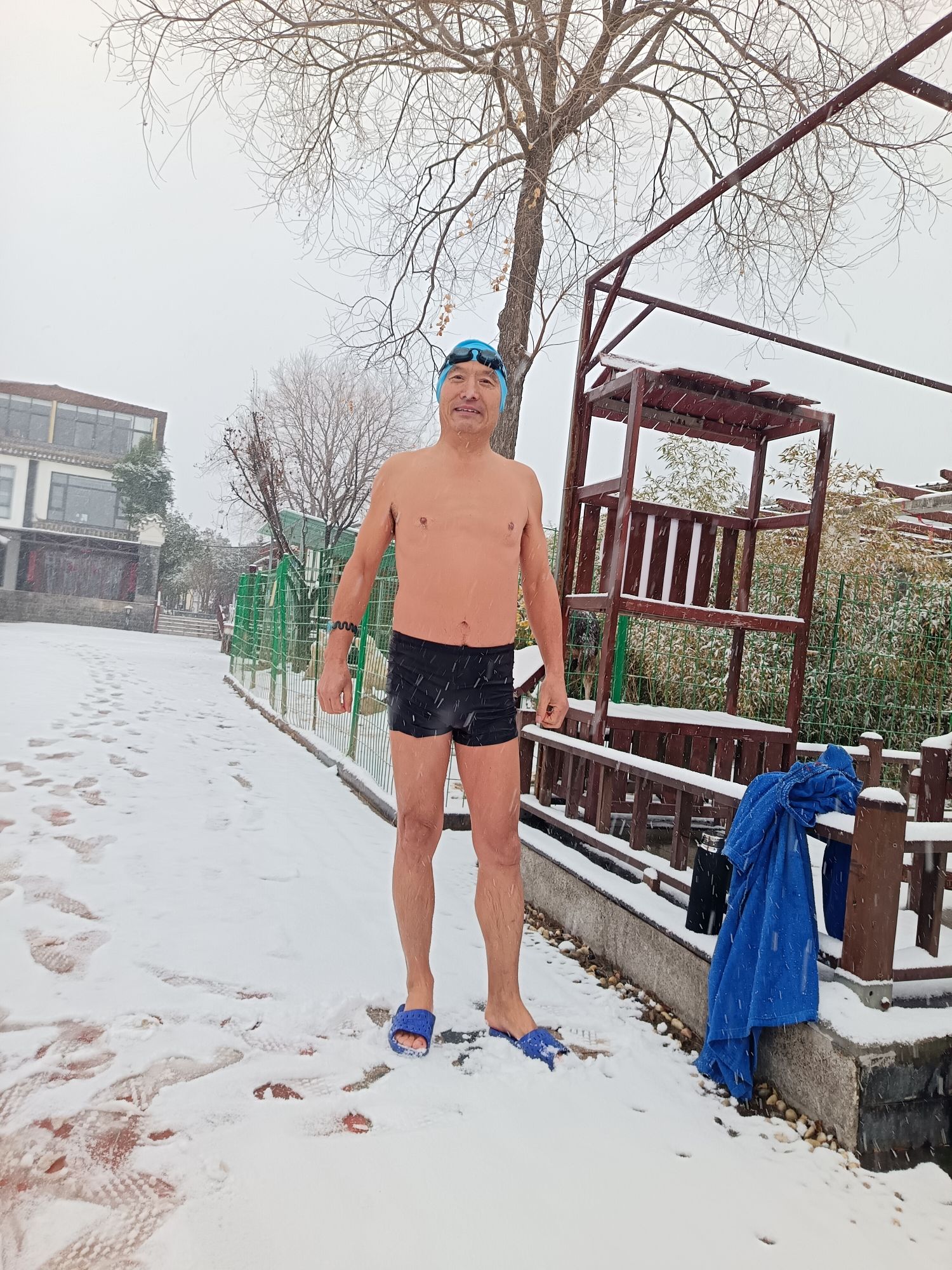 這對(duì)于我來(lái)說(shuō),還可真是個(gè)挑戰(zhàn):第一、從來(lái)沒(méi)有游過(guò)冬泳。第二、不知道自己的體質(zhì),是否適應(yīng)和承受。這是我考慮最多了問(wèn)題。2021年2022年對(duì)于我來(lái)說(shuō)是一個(gè)挑戰(zhàn):每次下水,我都是大呼小叫地、呲牙咧嘴地游一個(gè)單程(25米——35米),就趕快出來(lái)了。2023年由于疫情放開(kāi)后陽(yáng)了以后,休息了30多天,體質(zhì)也得到了恢復(fù)。,但是從元旦開(kāi)始,每次游泳也還是一個(gè)單程25米,一直堅(jiān)持到了夏天。好在,每次冷水下過(guò)之后,都有溫泉泡,可以驅(qū)寒。這是我和泳友們值得愜意事情了。